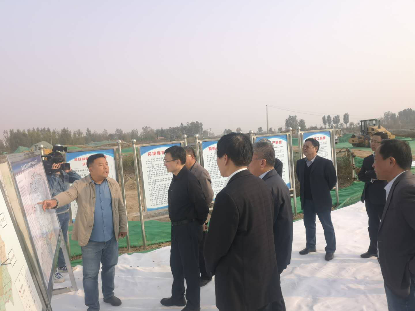 张书记查看了施工现场的工程建设进展情况,听取了建设管理处戚主任的建设任务汇报,对安全区六五河挡洪闸工程建设进展工作给与了高度评价,向项目部一线施工管理人员表示了深切的慰问,对恩县洼滞洪区建设工程水利二标的各参建单位表示赞扬。