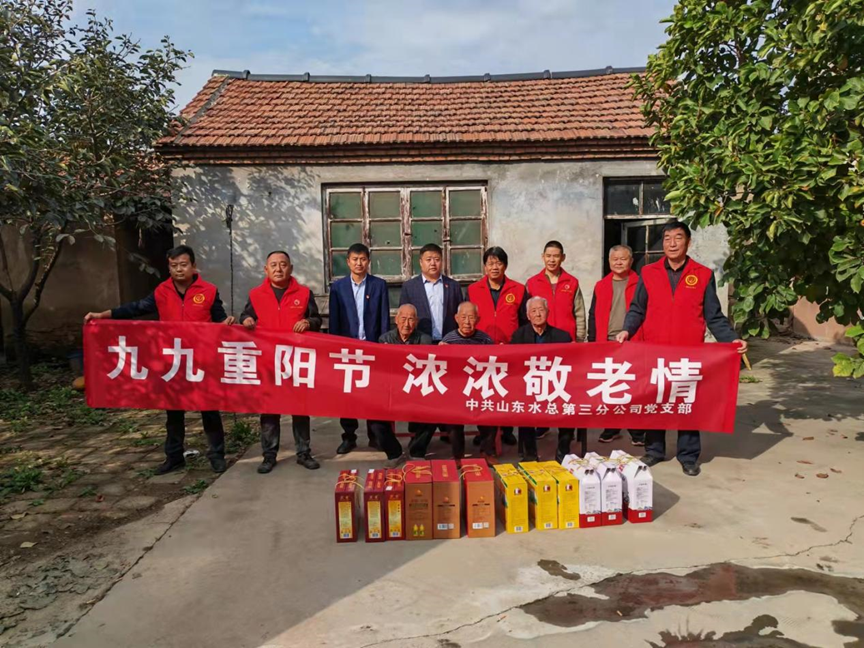 为弘扬中华民族尊老敬老的光荣传统,10月14日重阳节这天,第三分公司副总经理杨绪辉、王庆捷一行前往williamhill中国官方网站邹平市孝妇河提升改造工程施工4标项目部所在地,在高书记带领下看望东吕村的老党员们,为他们带去公司党委的关怀和温暖,送去慰问品并致以节日的问候和祝福。杨绪辉同老党员们亲切拉家常,详细询问了老党员们的生活情况和身体状况,嘱咐他们一定要保重身体,对他们为国家、为社会做出的贡献表达了崇高敬意。