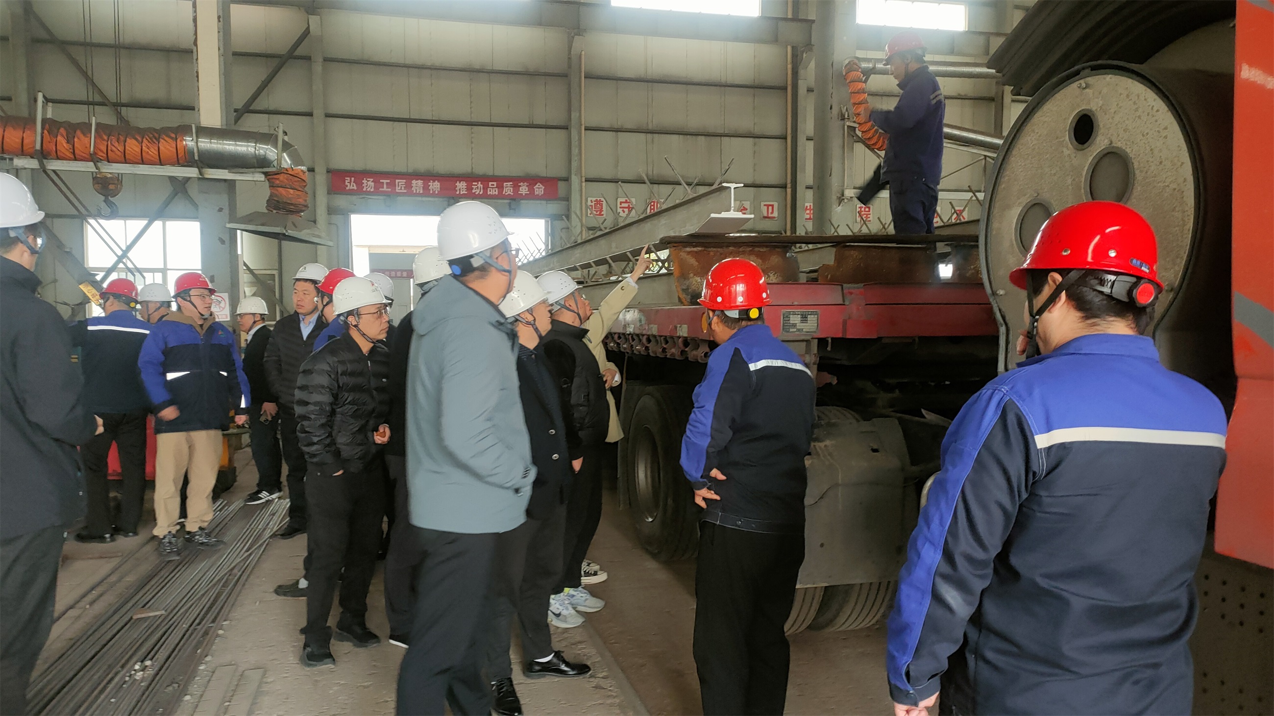 11月13日,刘保法等一行首先来到水工机械公司生产车间,实地查看为双溪口水库工程制作的金属结构闸门等生产设备。在随后的座谈交流会上,水工机械负责人王淼对刘保法一行的到来表示热烈欢迎,并详细介绍了公司的发展历程、发展方向及产品优势;黄海玉针对金属结构闸门制作、启闭机采购、运输及现场安装和项目进展情况进行了详细汇报,刘保法对工作进展和质量管控给予充分认可,对下一步现场安装提出了具体要求。