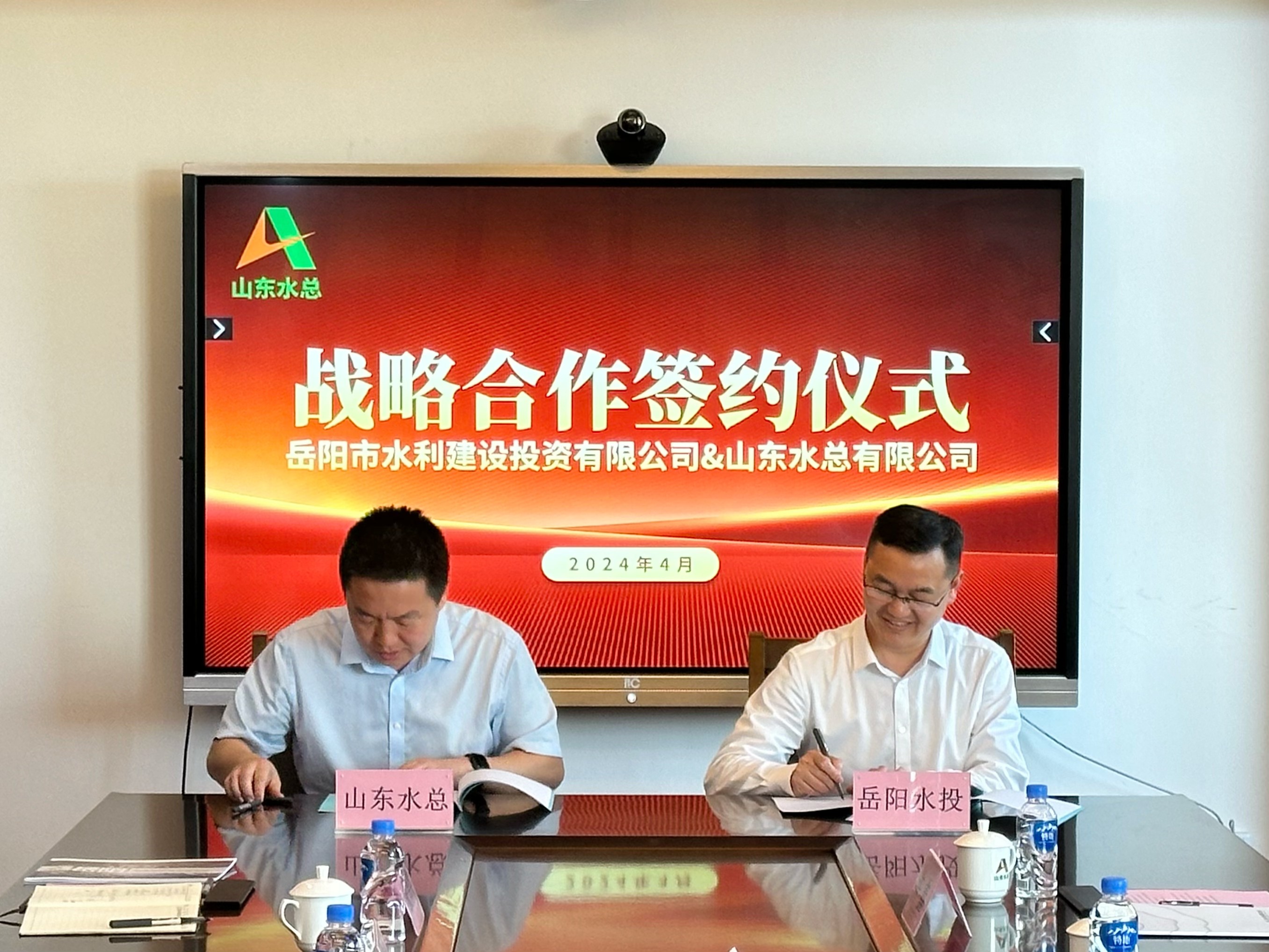 4月25日下午,岳阳市水利建设投资有限公司和williamhill中国官方网站战略合作签约仪式在公司总部举行。岳阳水投公司总经理刘绍锋、副总经理张威,山东williamhill中国官方网站公司党委副书记、董事、总经理靳文硕,党委委员、副总经理李光市等出席签约仪式。