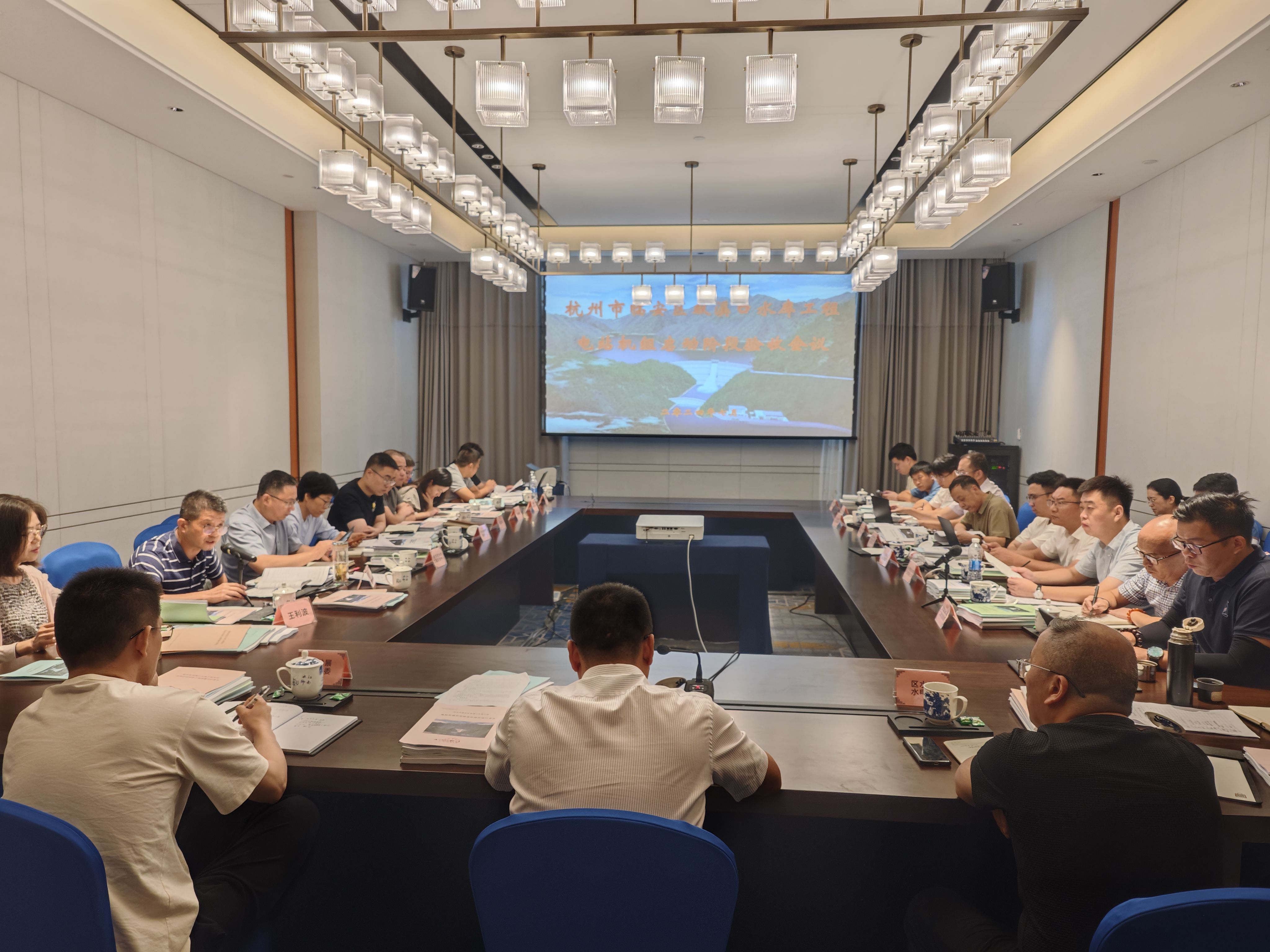 7月15日至16日,杭州市林业水利局在临安区主持召开了双溪口水库工程电站机组启动验收会议。杭州市发改委,市水库管理服务中心、市水利水电工程质量安全管理服务中心,临安区发改局、区财政局、区水利水电局、双溪口水库工程指挥部,清凉峰镇人民政府,国网临安供电公司,特邀专家及工程参建单位的代表参加验收会议。