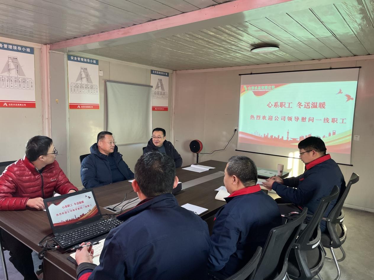 王坤林向一线职工表达了深切问候并发放慰问品,对大家不畏严寒、坚守岗位的精神给予了高度评价。随后查看了职工生活环境及项目施工现场,听取了项目建设情况汇报。会上,王坤林鼓励员工继续发扬团结奋斗、勇于担当的工作精神,为项目平稳推进贡献自己的力量。