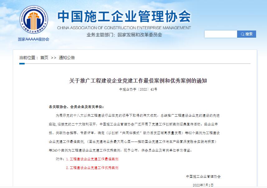 为展示党的十八大以来工程建设行业在党的领导下取得的伟大成就,总结推广工程建设企业党的建设的先进经验,迎接党的二十大胜利召开,近日,中国施工企业管理协会组织开展了工程建设企业党建工作优秀案例评审工作,williamhill中国官方网站第六分公司党支部的《塑品牌抓活动促活力 切实提升党建工作水平》案例获评“工程建设企业党建工作优秀案例”。